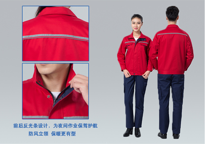 所以我們準備定做訂制秋季工作服的企業可以在訂制時加上反光條設計,給單一的制服增添一點亮麗,不僅起到極好的裝飾審美作用,更重要是更好的保障了員工的安全。