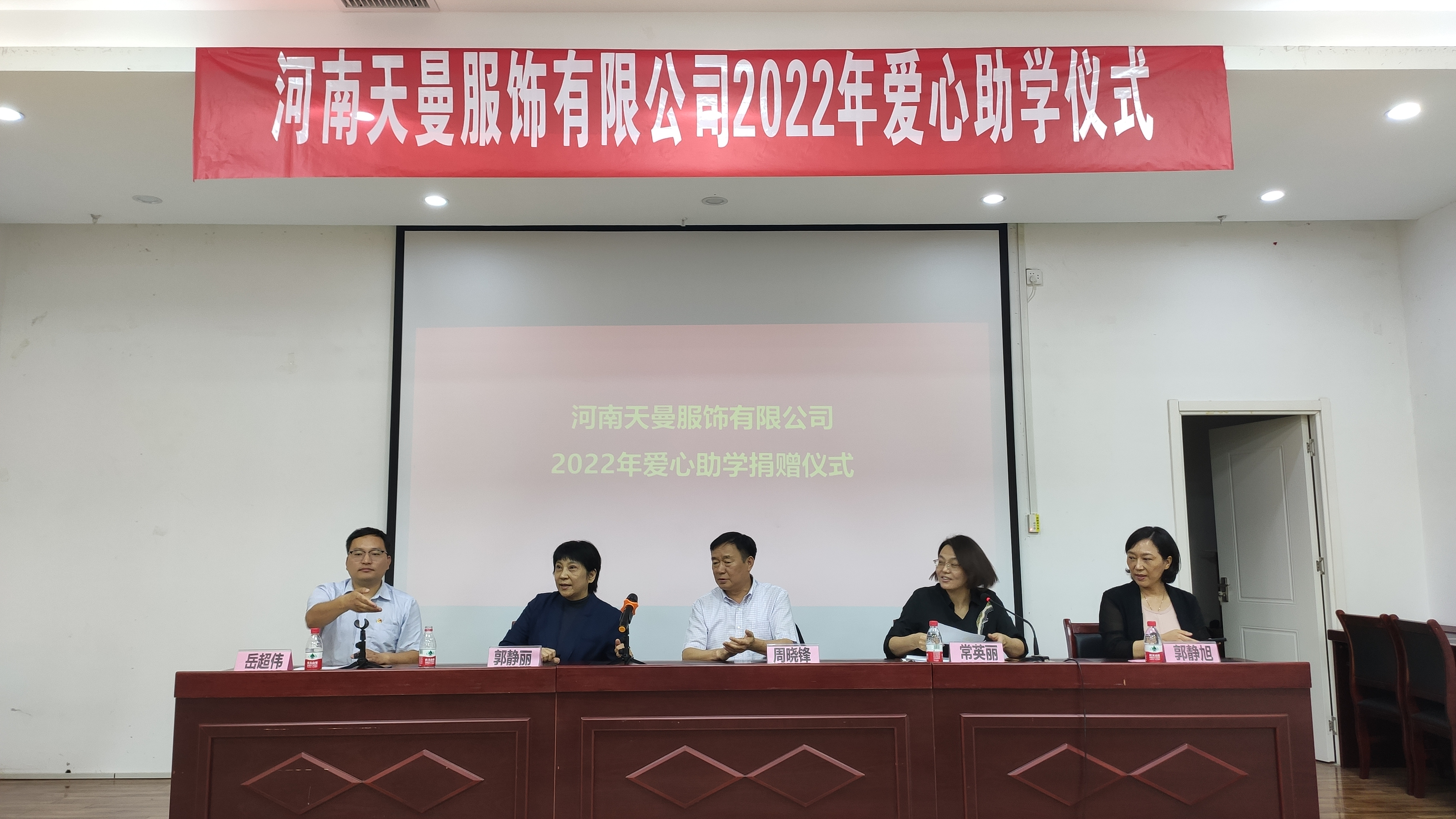 學生家長代表分享到:“孩子們考上大學很高興,今天得到了天曼服飾的助學資助很激動,心中充滿了感激和感謝”。