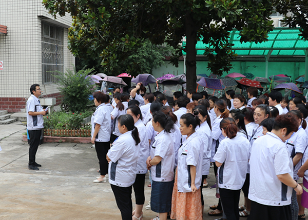 當天下午15:00,保安員發出火警報警信號。各演練工作組在聽到指令后,迅速到位,在最短的時間內,于車間內、樓梯間及安全出口處,通過口令加手勢,指揮員工從指定路線進行有秩序地疏散;把現場所有人員,快捷有序地疏散到安全地帶。