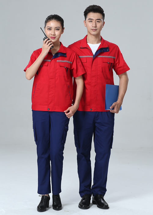 • 產品簡介:大紅色帶反光條工作服夏裝TMX663-02
